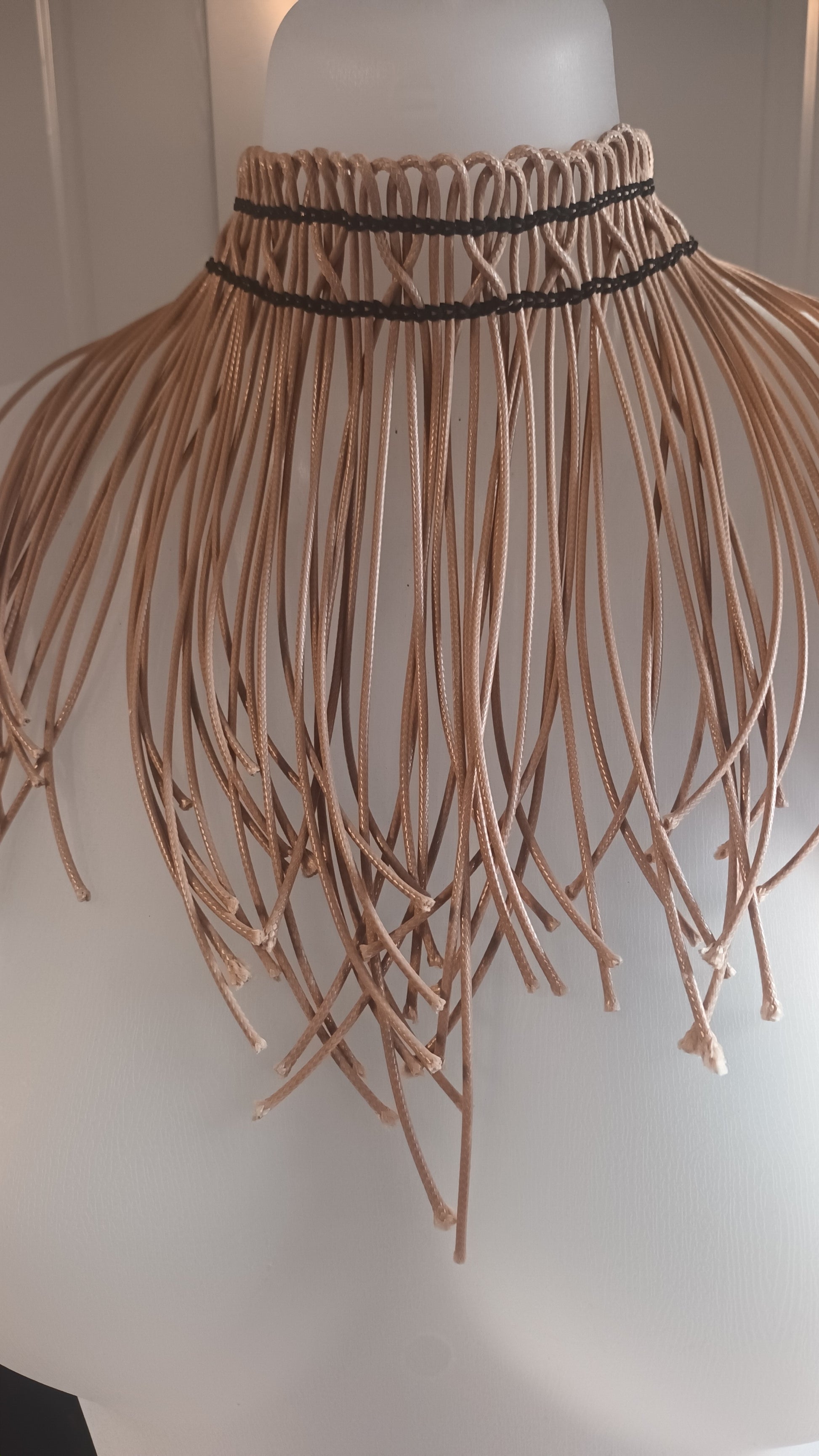 This stunning weaved necklace can be worn as a chocker or loose it has a slip knot at the back for easy use.